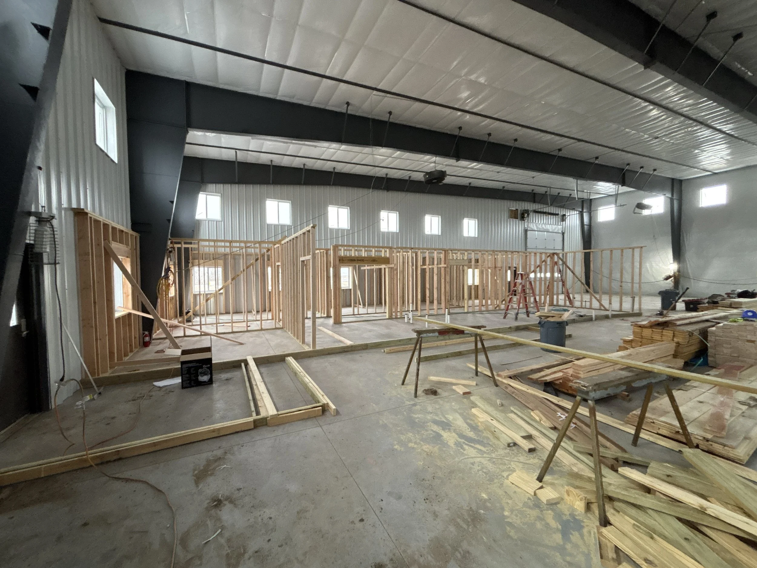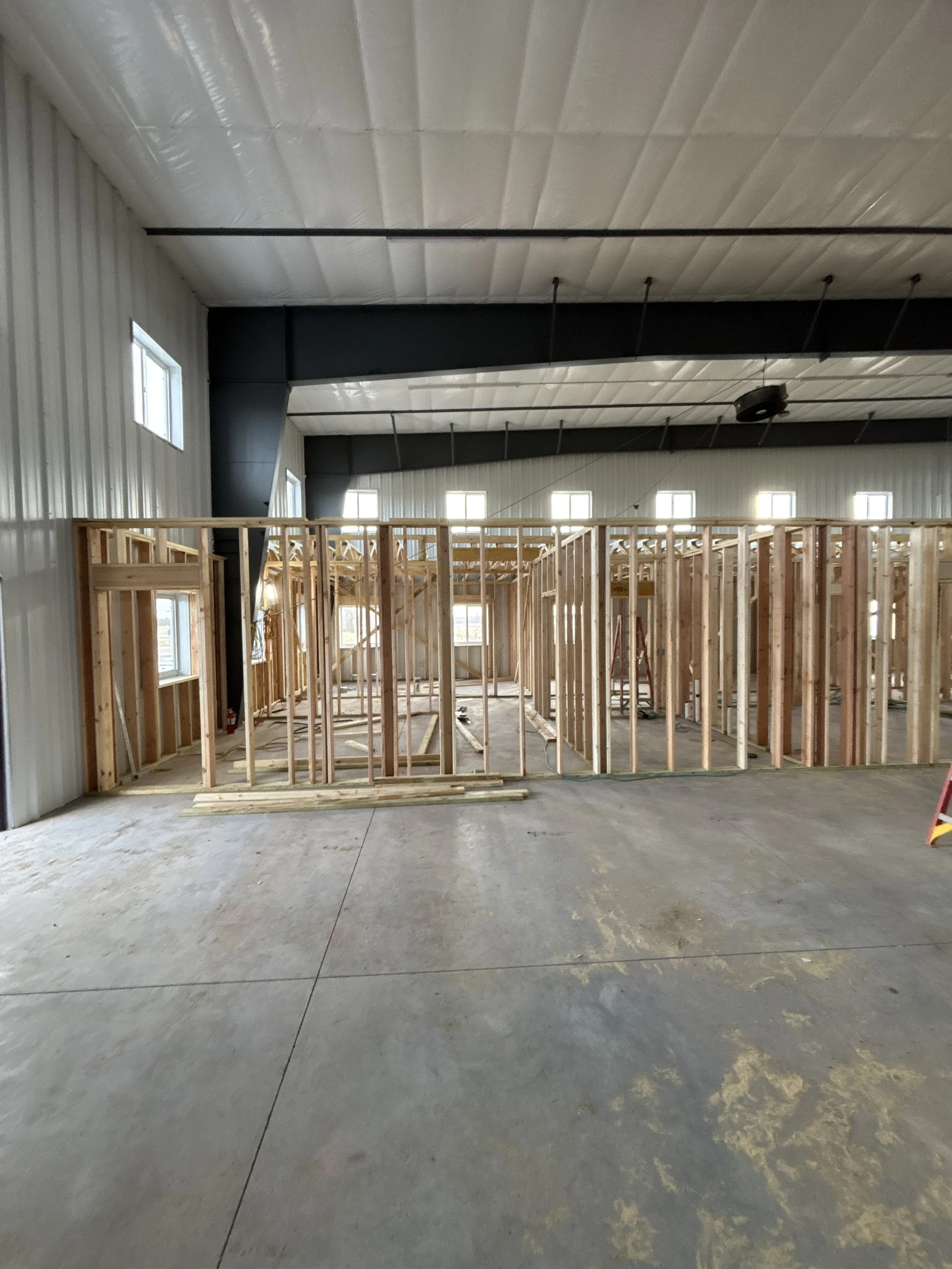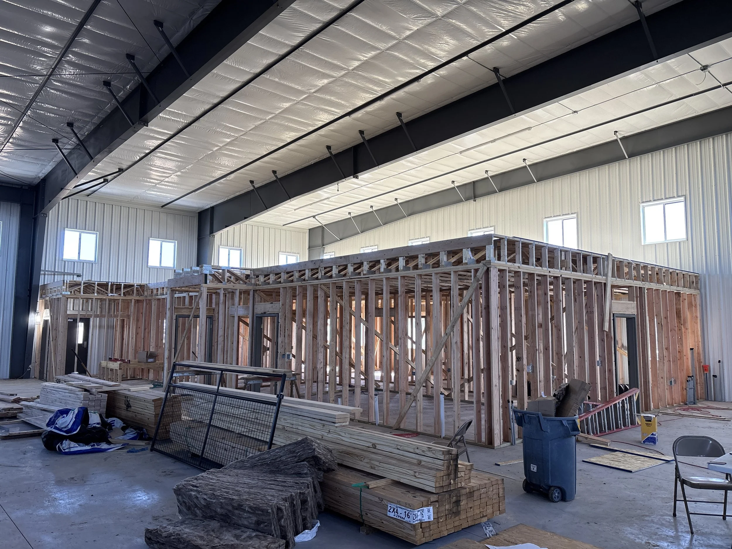 The building exterior is complete! We are waiting on spring to allow the remaining grading and utility work to be completed so we can pour the remaining exterior concrete.