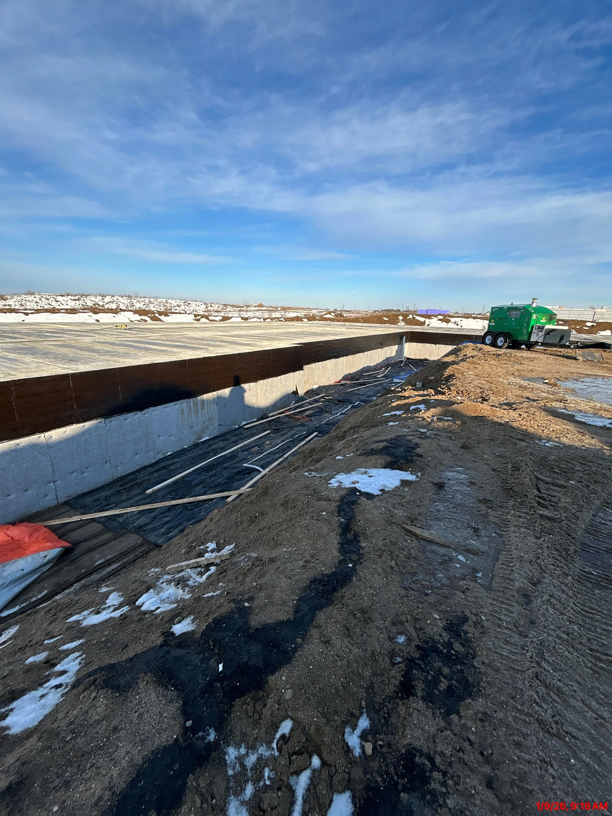 We continued to backfill around the building and we wrapped up waterproofing and drainage board install.